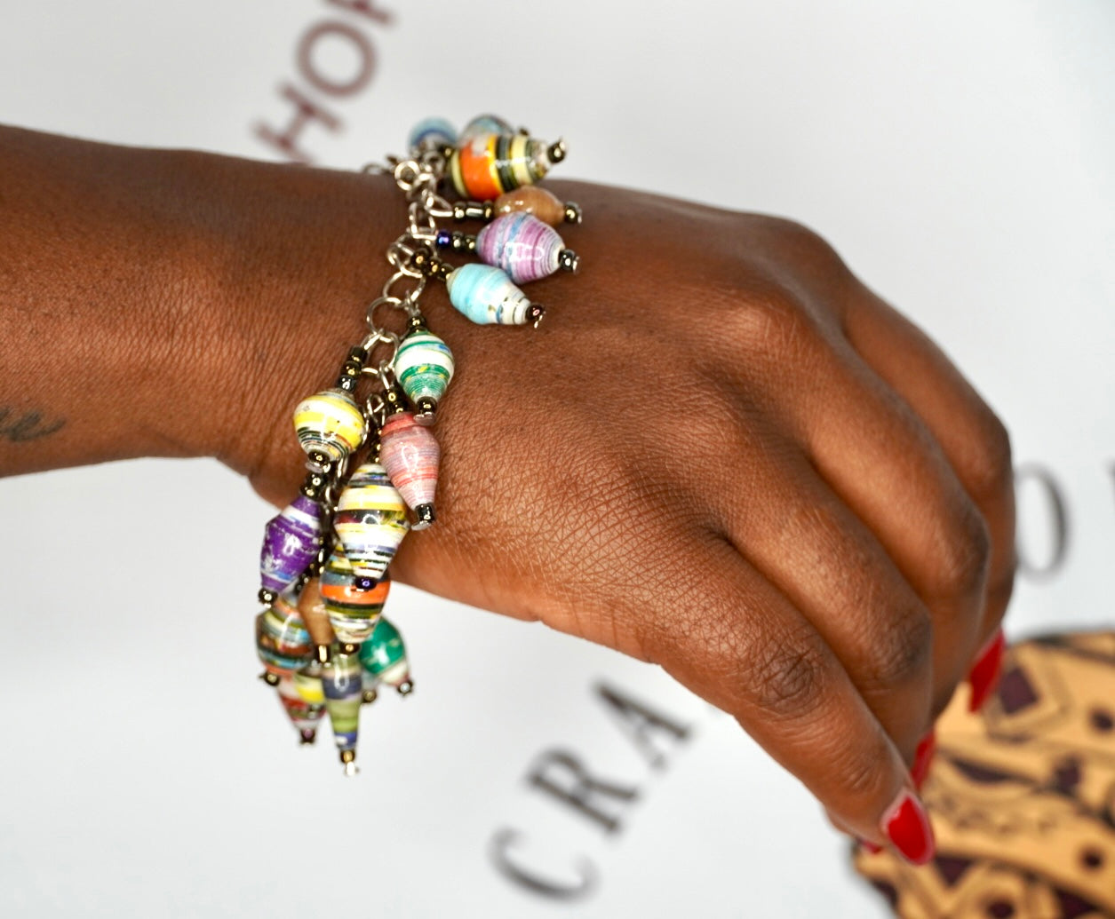 Ugandan Fair Trade Paper Bead Charm Bracelet