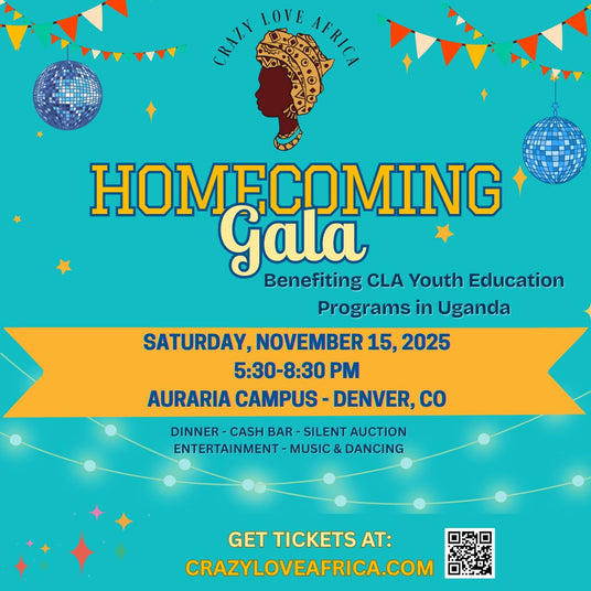 2025 marks Crazy Love Africa’s 11th year—and we’re thrilled to celebrate with you at our 2nd Annual Gala. This year’s proceeds will primarily support our Youth Education Programs. In Uganda, school is not free—and without financial support, many children are unable to attend. Your generosity will ensure that every child in our program has the opportunity to learn, grow, and build a brighter future through education.