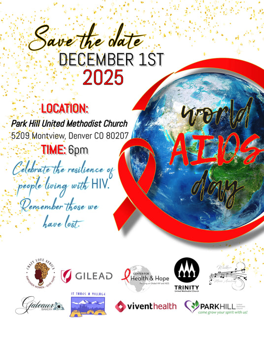 Join us on Monday,December 1st for a Candlelight Walk and Interfaith Service of Healing & Hope for World AIDS Day at Park Hill United Methodist Church. World AIDS Day is an opportunity for every community and individual to honor the more than 32 million people who have died worldwide from AIDS-related illness. Join us as we remember those lost, and stand together in the fight against HIV. Speakers and musicians to be announced in October, 2025.This is a free event for the entire community.